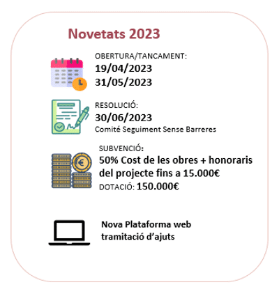 - El programa, que subvenciona les obres d’eliminació de barreres arquitectòniques, podran accedir les comunitats d’habitatges on resideixin persones amb mobilitat reduïda o més grans de 75 anys.