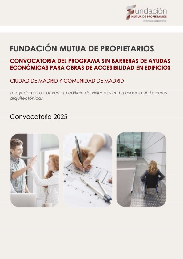 En el marco del Programa Sin Barreras de la Fundación Mutua de Propietarios abre nueva Convocatoria 2025 de ayudas económicas directas para generar edificios accesibles. La misión de la Fundación es la de mejorar la calidad de vida de las personas con movilidad reducida facilitando la accesibilidad a la vivienda y su entorno.