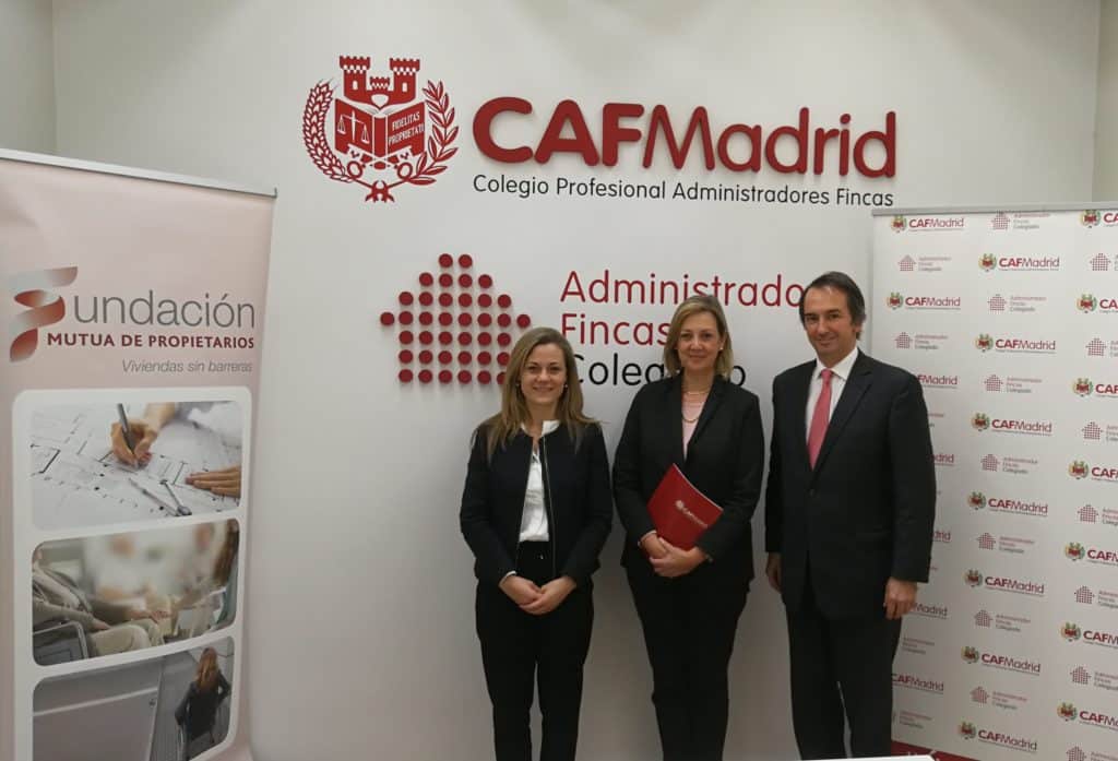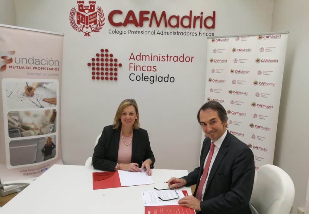 Madrid, 22 de noviembre de 2018.– La Fundación Mutua de Propietarios y el Colegio de Administradores de Fincas de Madrid han firmado un convenio de colaboración para fomentar la mejora de la accesibilidad universal en el entorno de las comunidades de propietarios.