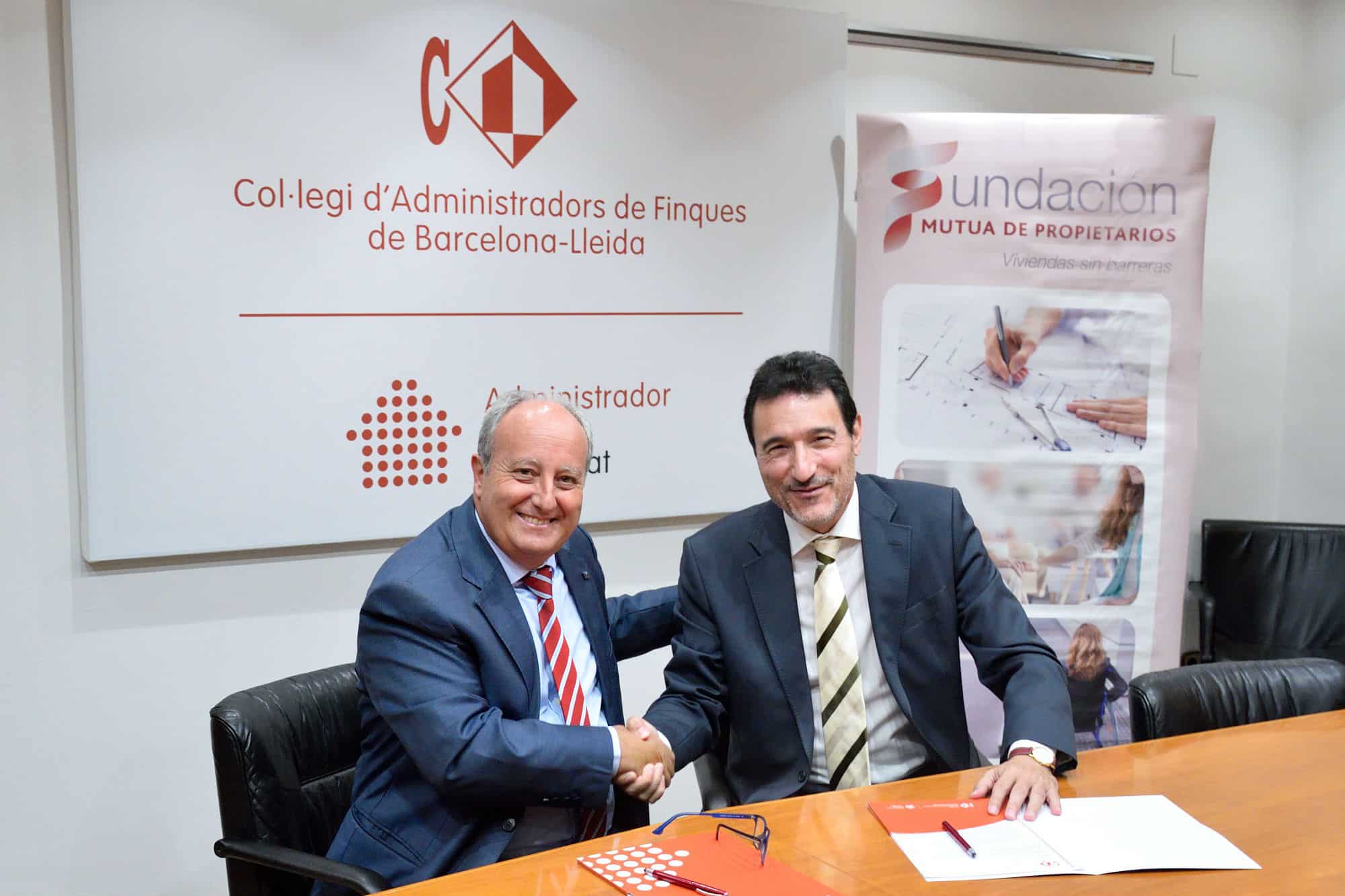La Fundación Mutua de Propietarios y el Colegio de Administradores de Fincas de Barcelona-Lleida firman un convenio para consolidar su relación de colaboración y seguir caminando hacia una sociedad más igualitaria y justa para las personas con movilidad reducida.