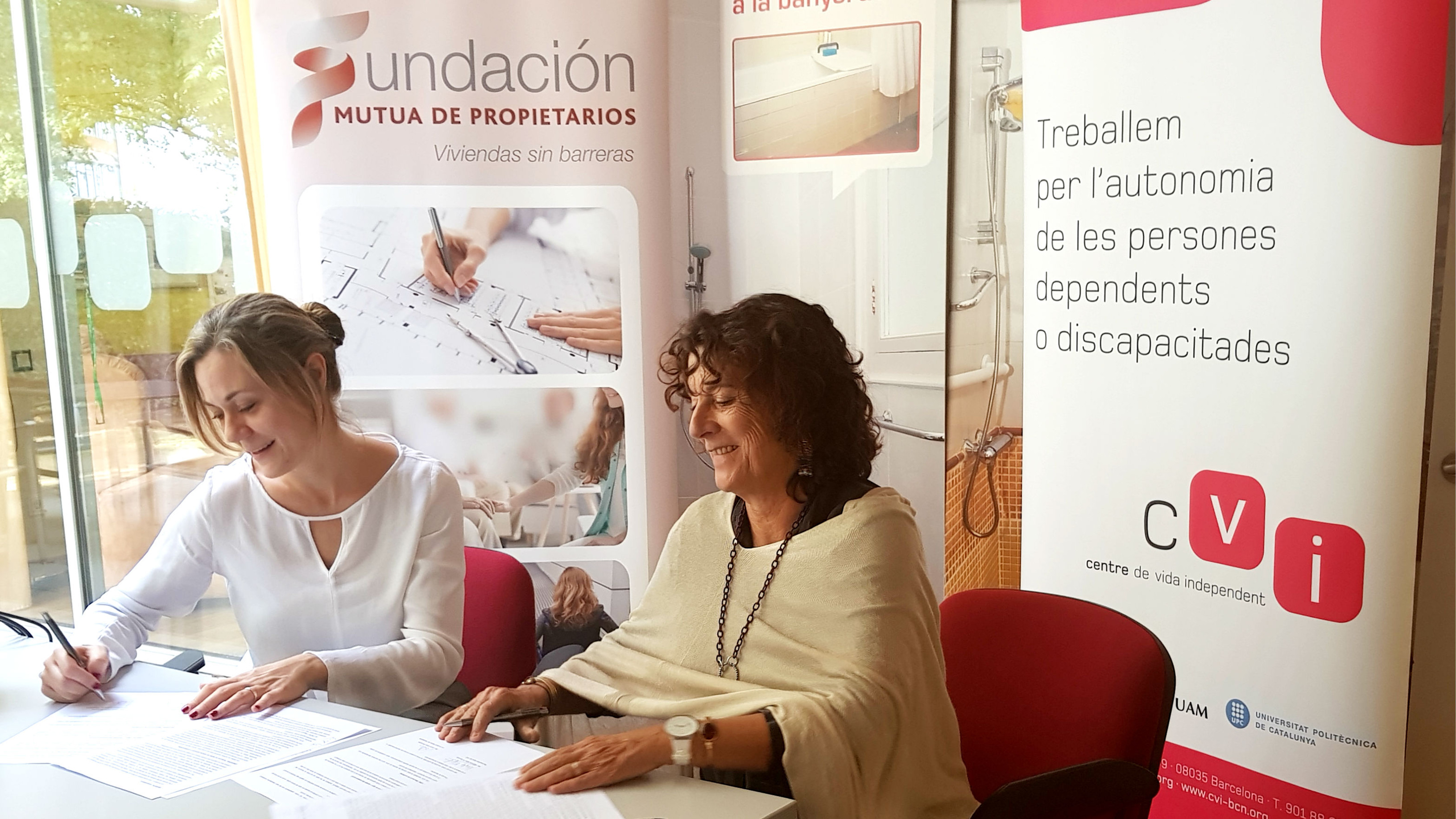 La Fundación Mutua de Propietarios y la Asociación por la Vida Independiente y su Centro de Vida Independiente firman un convenio de colaboración que tiene por objeto establecer las bases de cooperación entre la Fundación y el Centro con la finalidad de contribuir a la mejora de la calidad de vida de las personas mayores, con dependencia y con discapacidad en relación a la autonomía personal, la seguridad y envejecimiento activo y saludable mediante la eliminación de barreras arquitectónicas de la vivienda y su entorno.