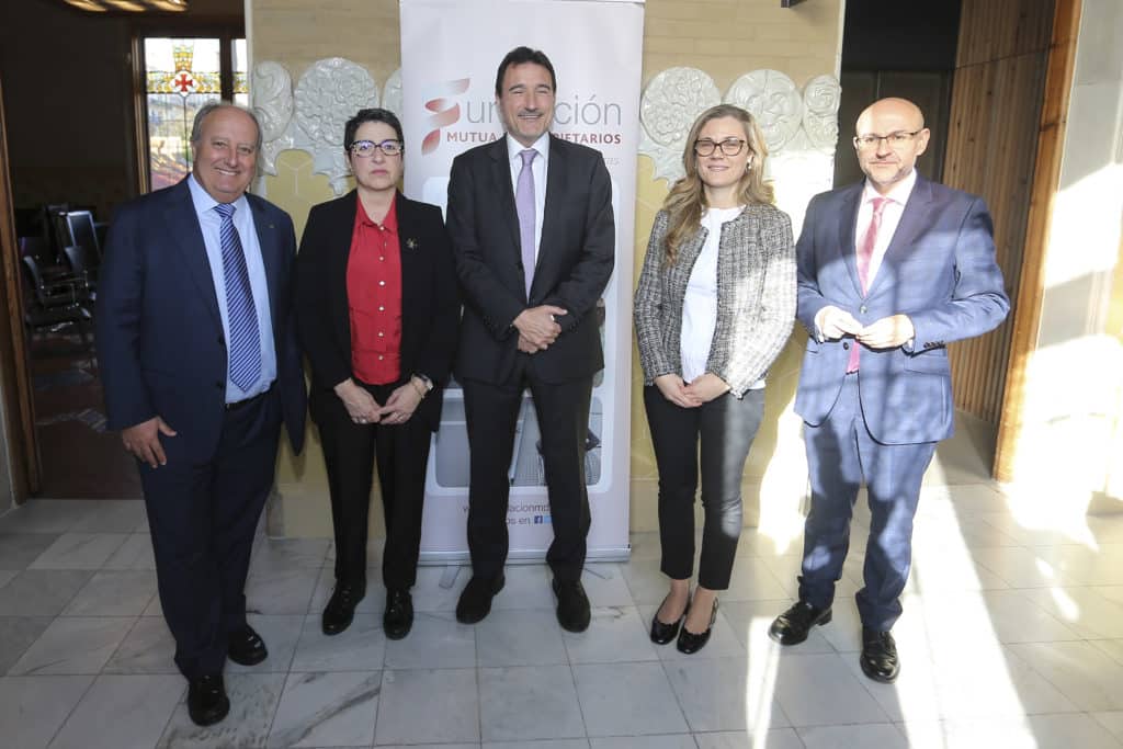 De izquierda a derecha, D. Sergio Nasarre, Director de la Cátedra UNESCO a la vivienda de la URV, Dña. Laura López, Directora Fundación Mutua de Propietarios, D. Miquel Perdiguer, Presidente Fundación Mutua de Propietarios, Dña. Montserrat Pallares, Presidenta COCEMFE Barcelona y D. Enrique Vendrell, Presidente del Colegio de Administradores de Fincas de Barcelona-Lérida